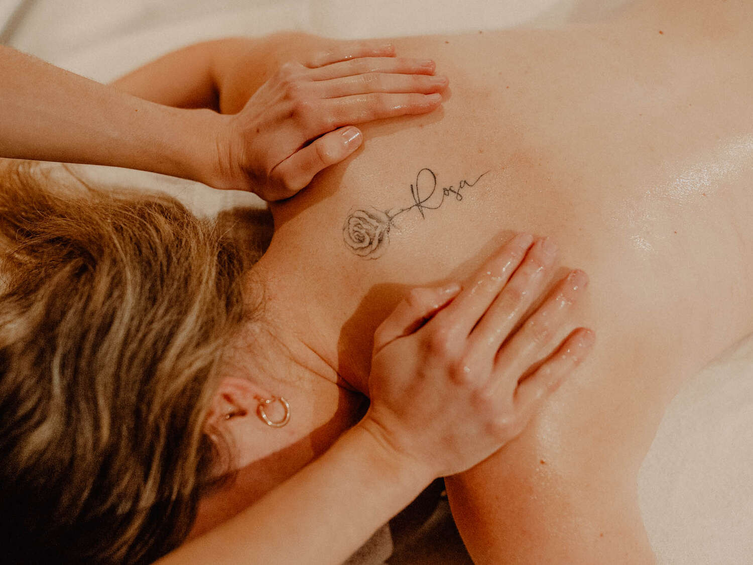 Unsere Spa-Kabine im ersten Stock ist der ideale Ort für wohltuende Massagen und Kosmetikbehandlungen – ruhig, lichtdurchflutet und mit Blick ins Grüne.